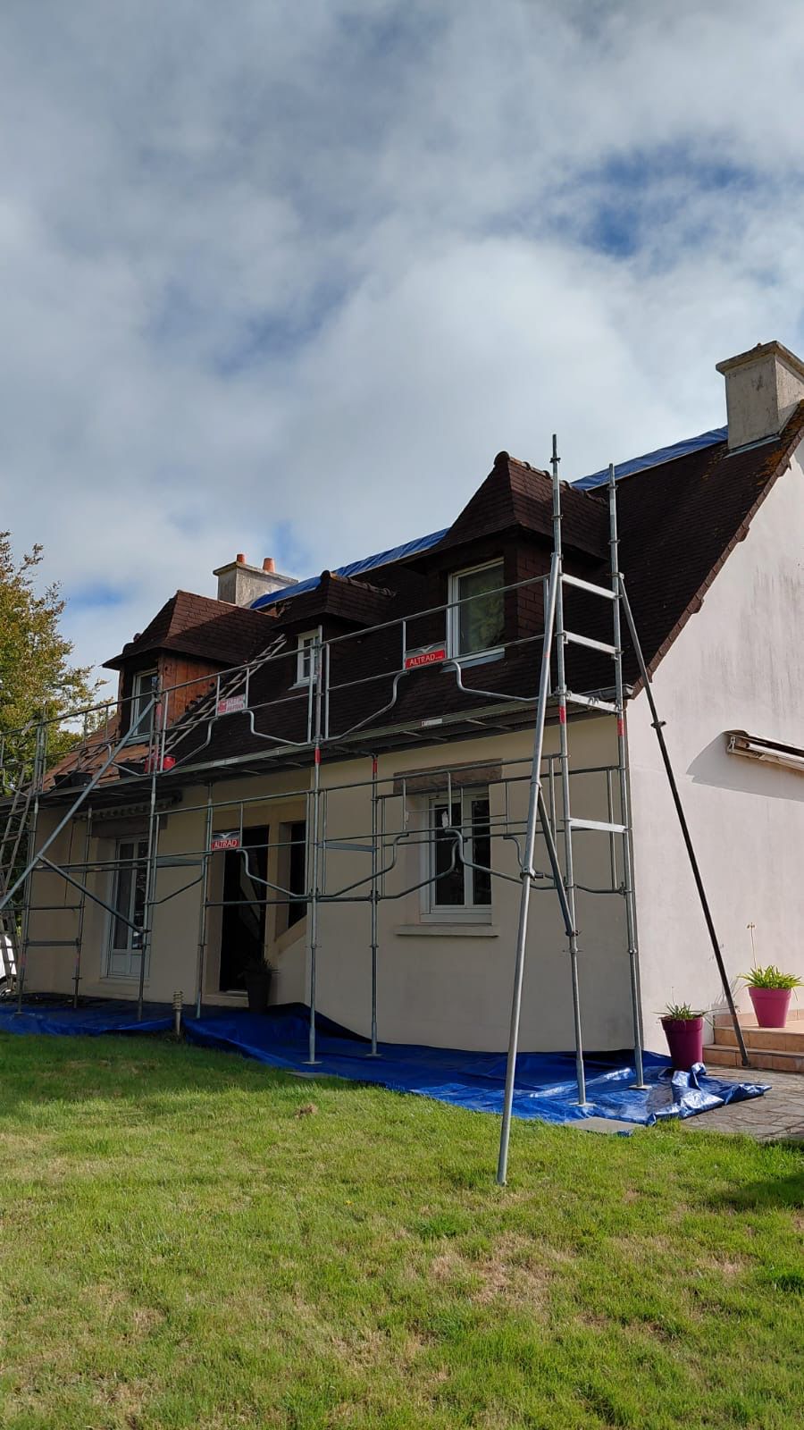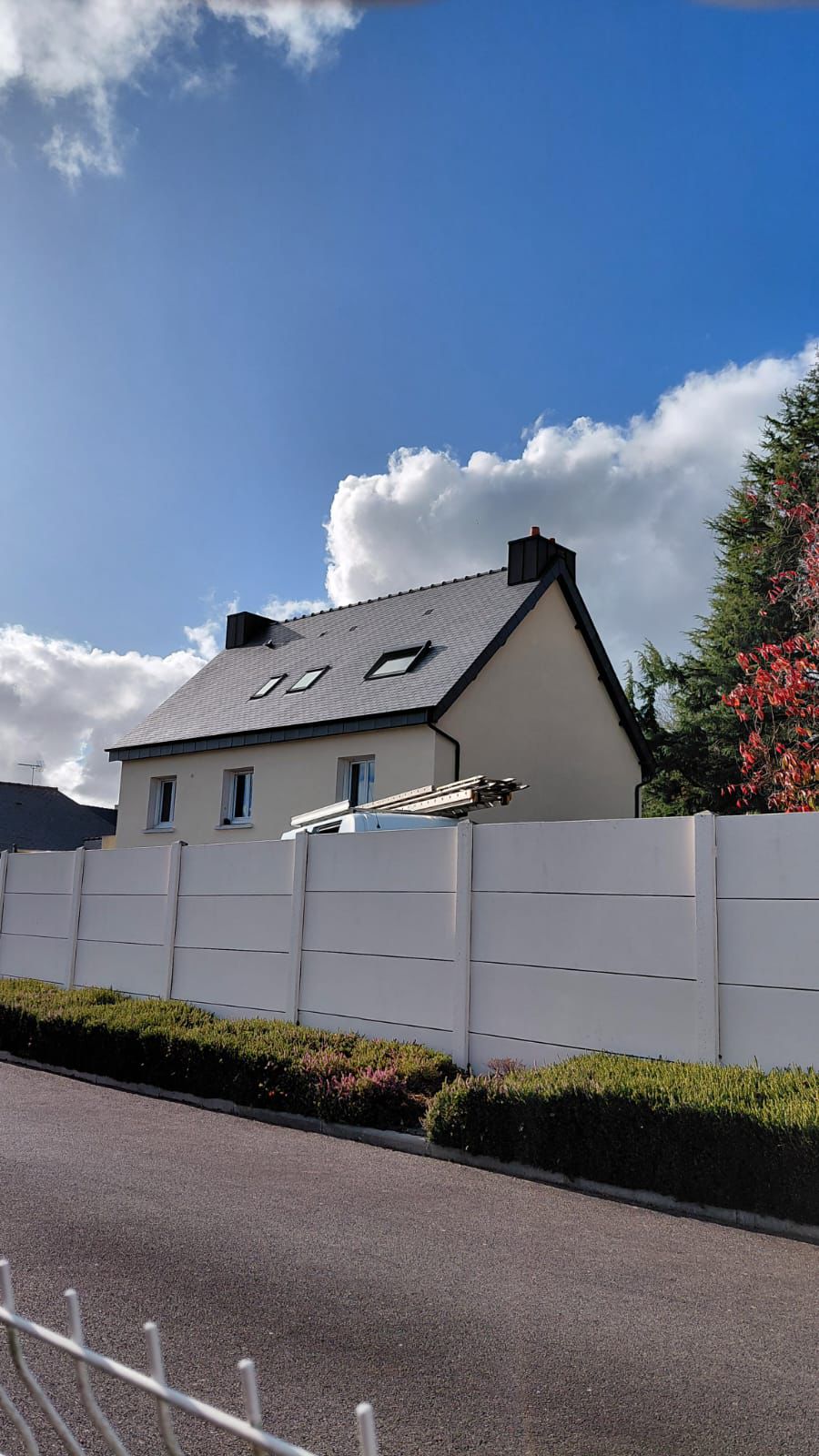 Pose d’ardoises naturelles pour une toiture durable, parfaitement intégrée à l’architecture traditionnelle bretonne. Ce choix de matériau garantit une finition élégante et une excellente résistance dans le temps.