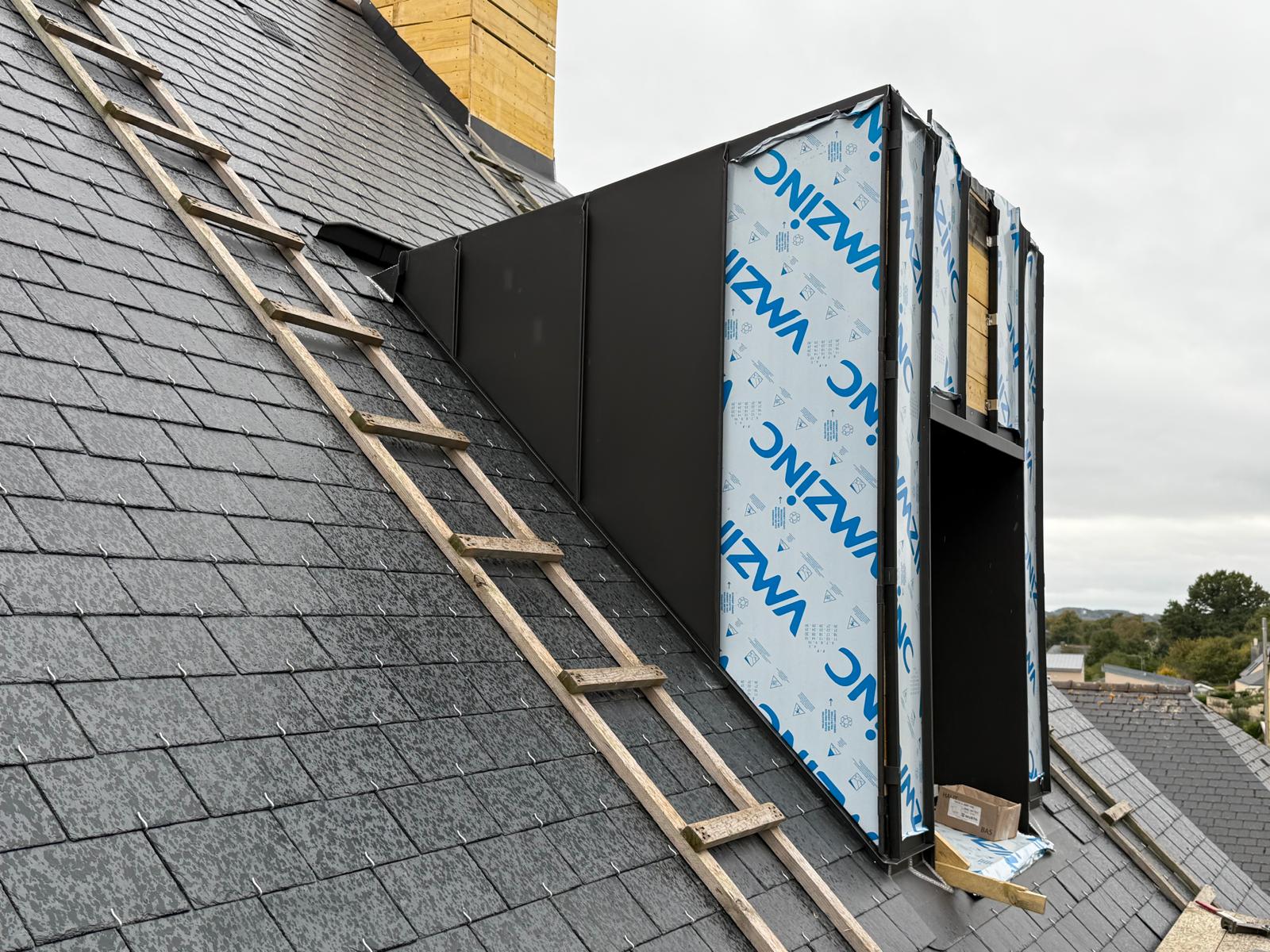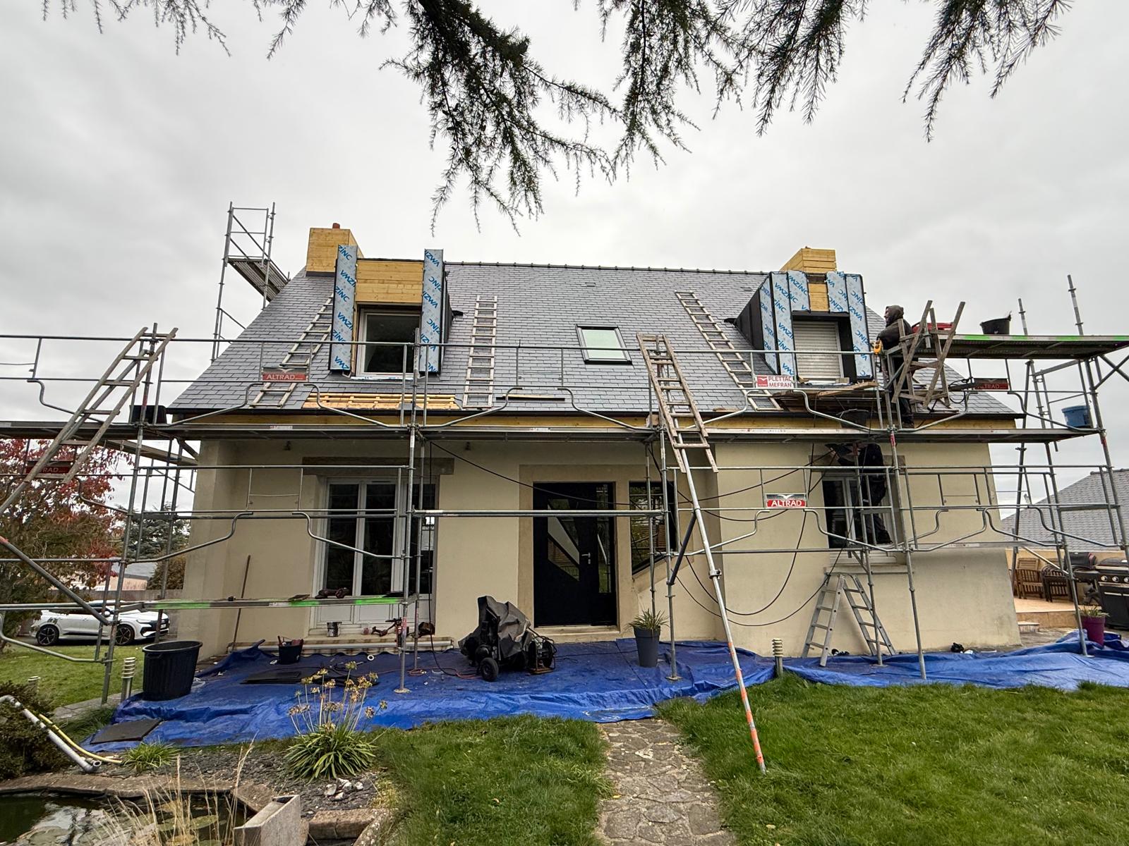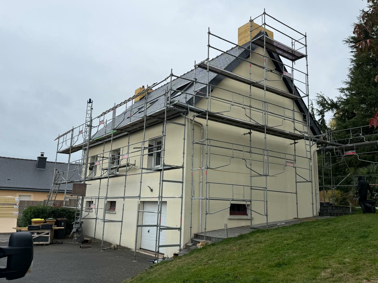 Nous sommes actuellement en rénovation d'une maison à Plédran, près de Saint-Brieuc avec l'isolation sarking qui permet une isolation d'une toiture par l’extérieur en une seule opération puis ensuite la pose.