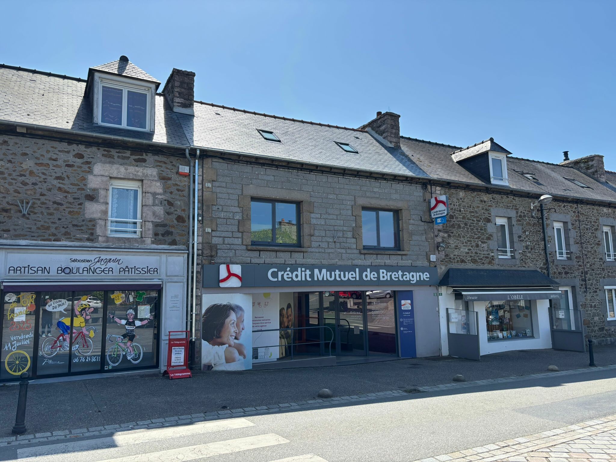 Nous sommes intervenus à Pléneuf-Val-André pour la rénovation complète de la toiture du bâtiment du Crédit Mutuel de Bretagne, situé en centre-bourg.